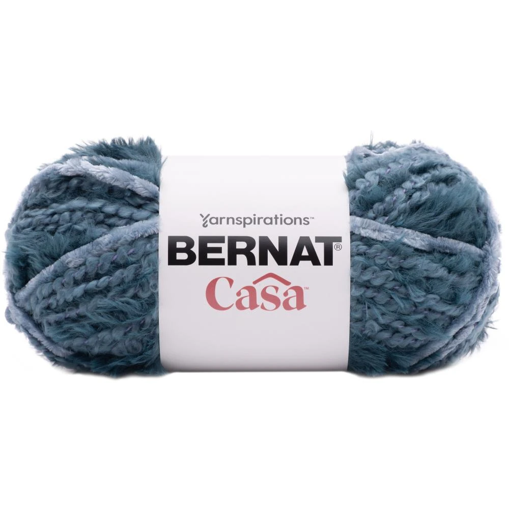 Bernat Casa is comprised of 3 fibers (fur, velvet, and chenille) spliced together to create a lush multi-textured yarn. No tying ends in at the finish of a project or working from multiple balls. Easy, stress free knitting and crocheting.