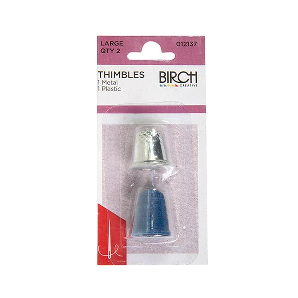 - Pack of 2 includes one plastic thimble and one metal thimble. Large in size.