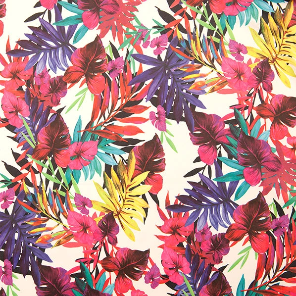 Create beautiful evening dresses and make a style statement with this Blushing Satin Fabric. Easy to work with, you can also create jackets and skirts and holds its body. Available in a Ferns Purple design. Width of 148cm and for purchase by the metre. 73% Polyester, 25% Cotton, 2% Spandex.