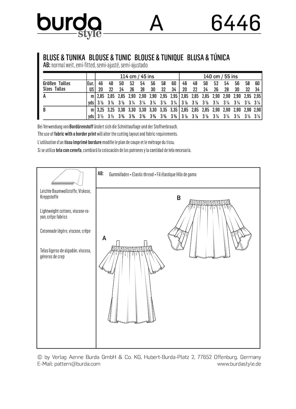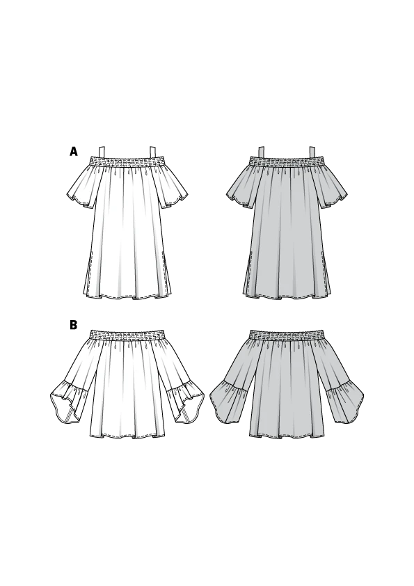 - Highlight your shoulders with a shirred neckline: View A features wide sleeves and strap. View B has pretty frilled sleeves which drape nicely from the elbow.