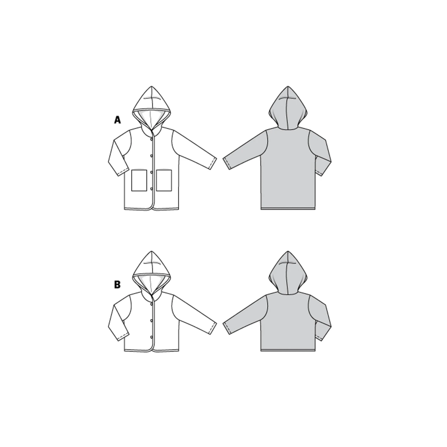 Coat or jacket? The pointed hood, bound edges and button fastenings are the same for both. Coat view A includes patch pockets.