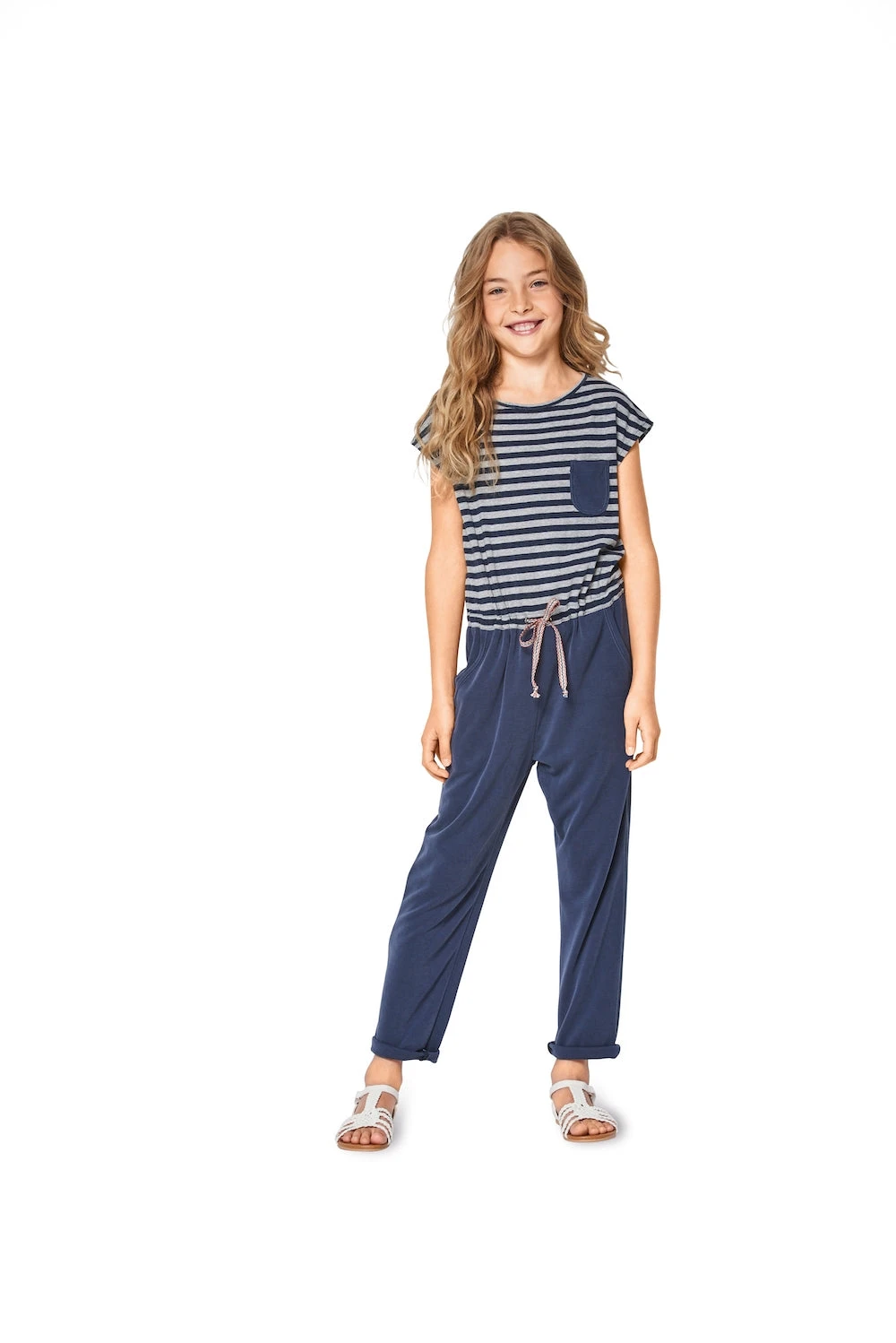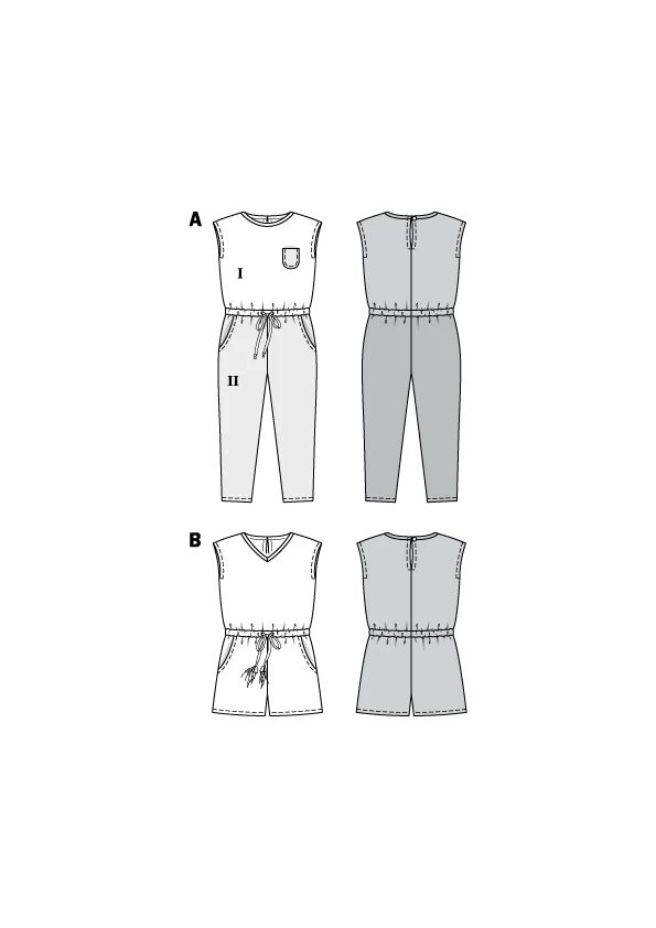 - A summery jumpsuit with overcut shoulders, a drawstring at the waist and with rounded pockets.