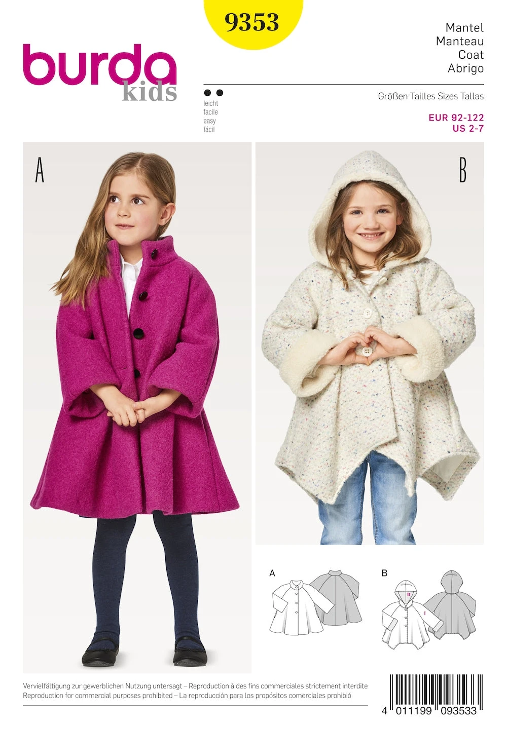 - Perky coat with a swingy hem for little fashionistas. View A, with a stand collar, makes an ideal match for skirts and dresses.