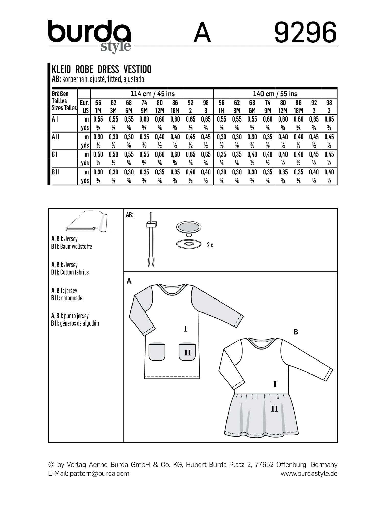 Burda Pattern X09296 Misses’ Babies’ Pull-On Dresses (1M-3)