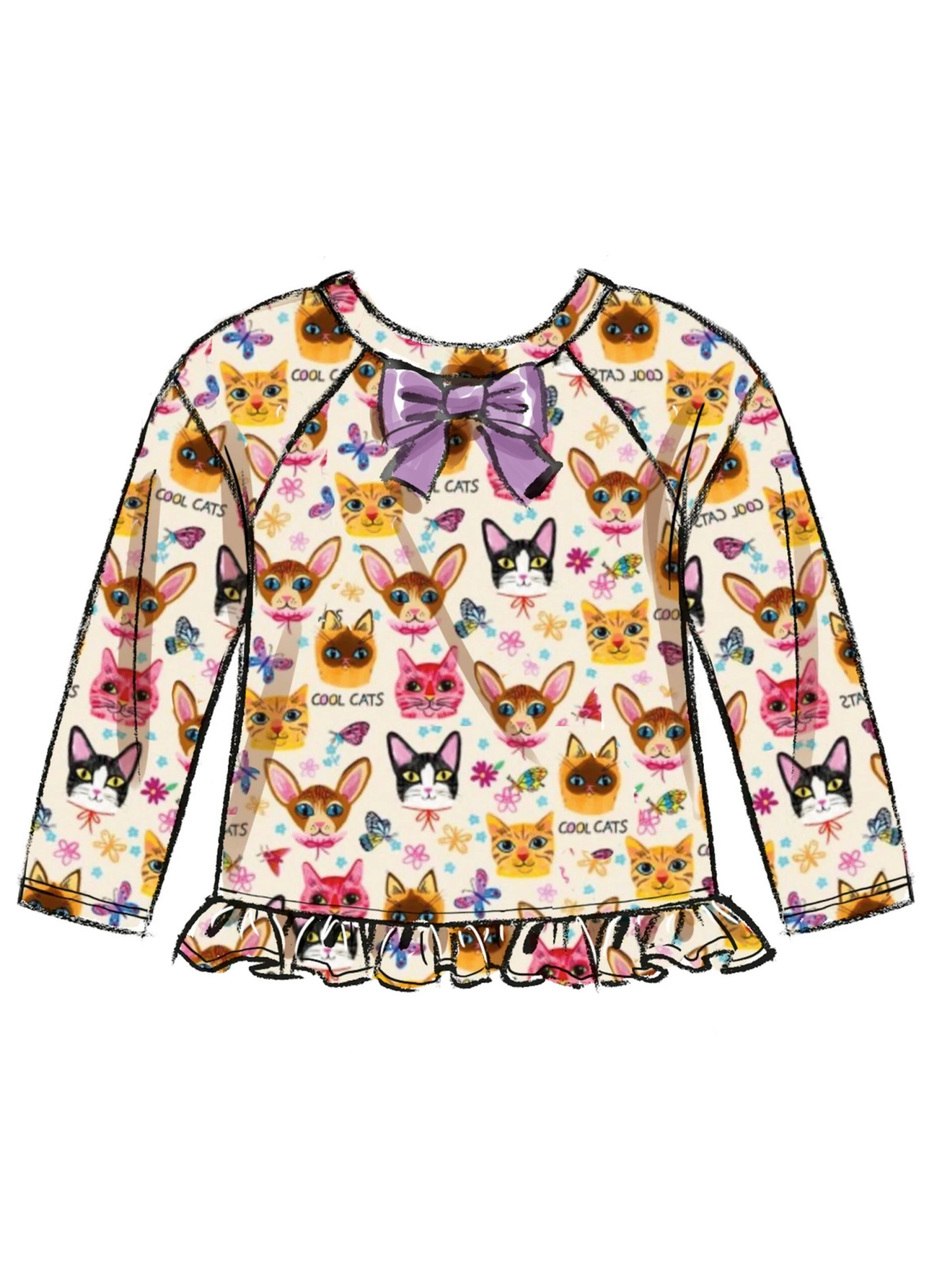 •Pullover tops have long sleeves, back opening with button closure, back seam, and options for straight or ruffle hems.