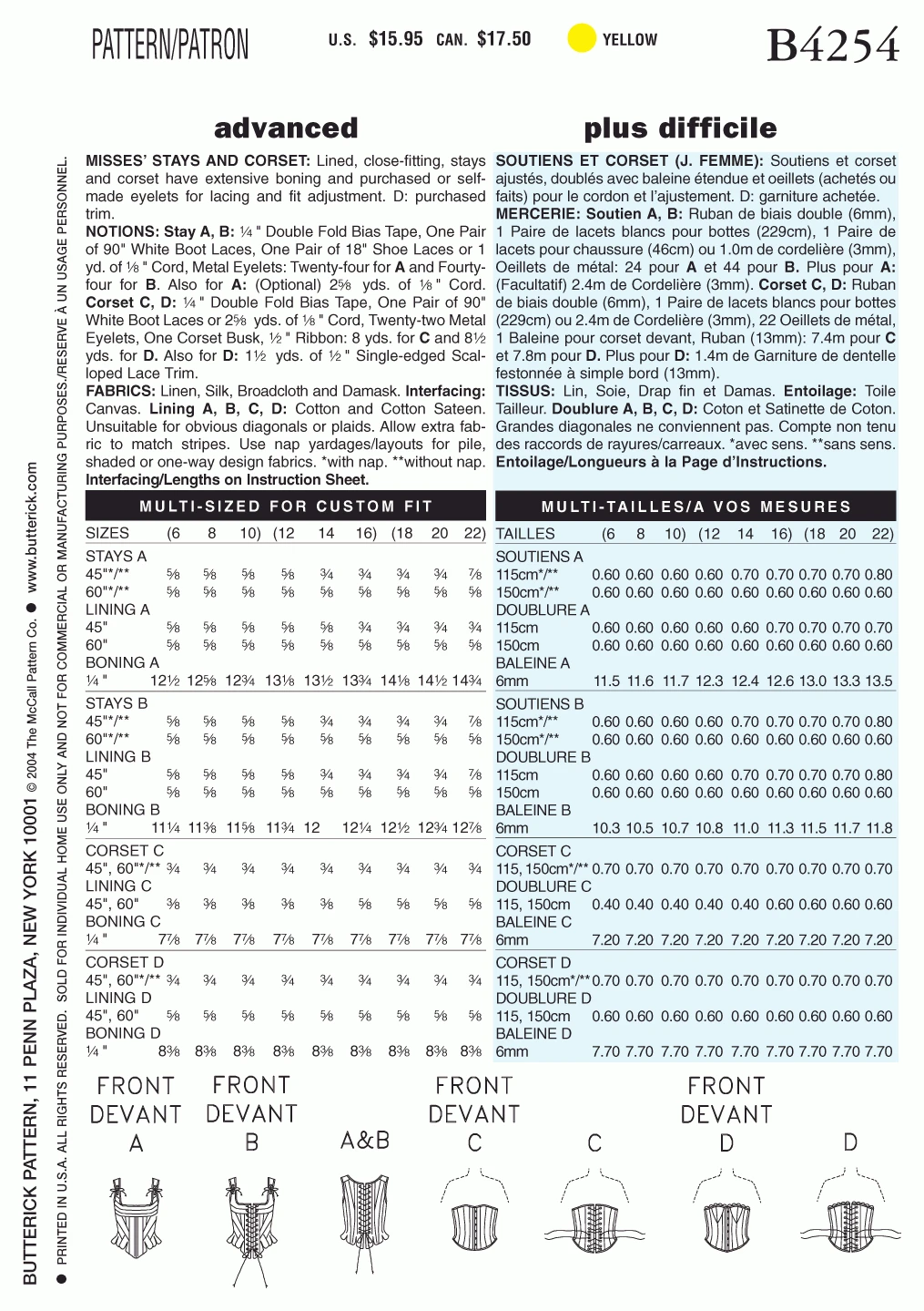 Butterick Pattern B4254 Misses’ Stays And Corsets