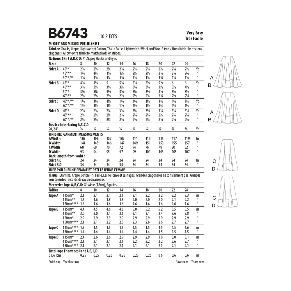 Butterick Pattern B6743 Misses’/Misses’ Petite Gored Skirts