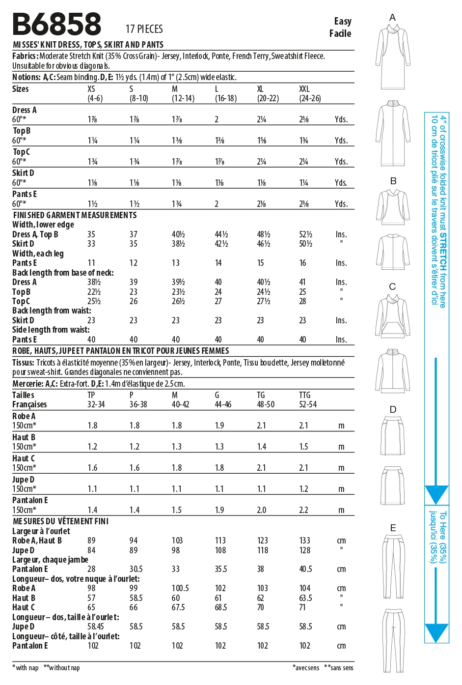 Butterick Pattern B6858 Misses’ Knit Dress, Tops, Skirt And Pants