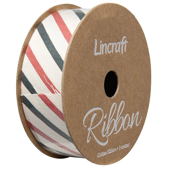 Cotton Ribbon, Barber Red Blue- 25mm X 3m