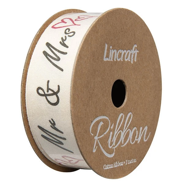 Cotton Ribbon, Mr Mrs Black Red- 25mm X 3m