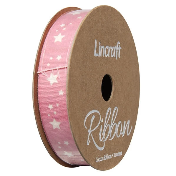 - Light Pink in colour, this ribbon has a sweet Stars design.