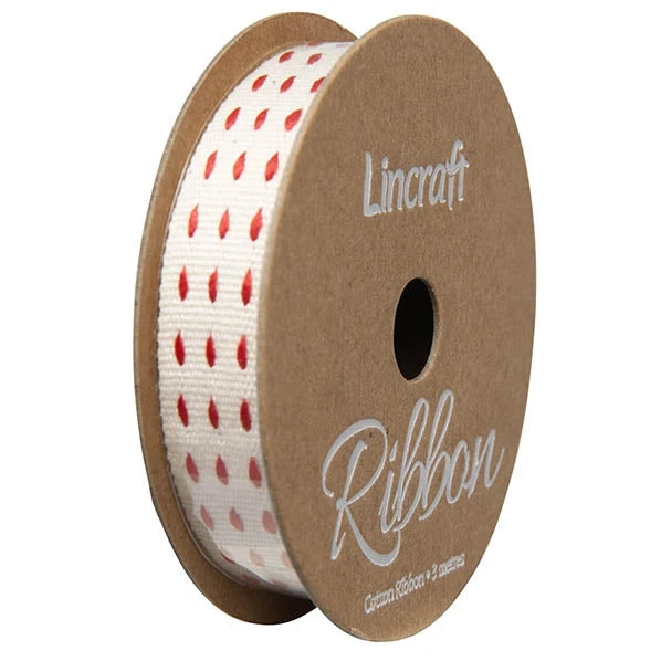Cotton Ribbon, Stitches Red- 15mm X 3m