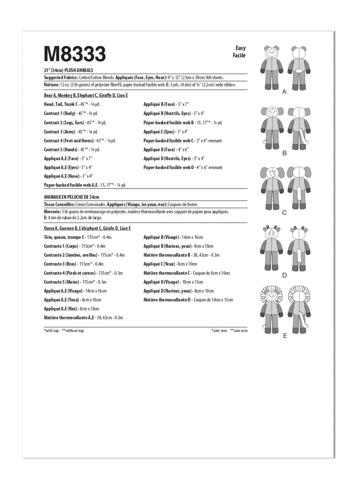McCall’s M8333 Plush Animals