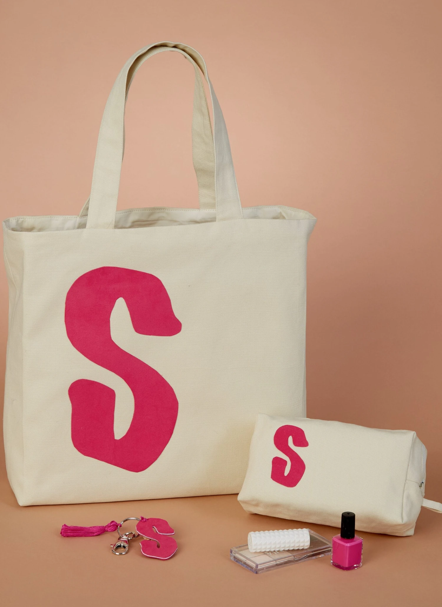 Giftable, personalized Tote 14″H X 14″L X 4″D (35.5 X 35.5 X 10cm) is lined with inside pockets and a loop for 3″ (7.5cm) Key Ring. It is good for daily use, traveling, working, shopping and school. Zipper Case 4.5″H X 7.5″L X 2.5″D (11.5 X 19 X 6cm) stores small items.