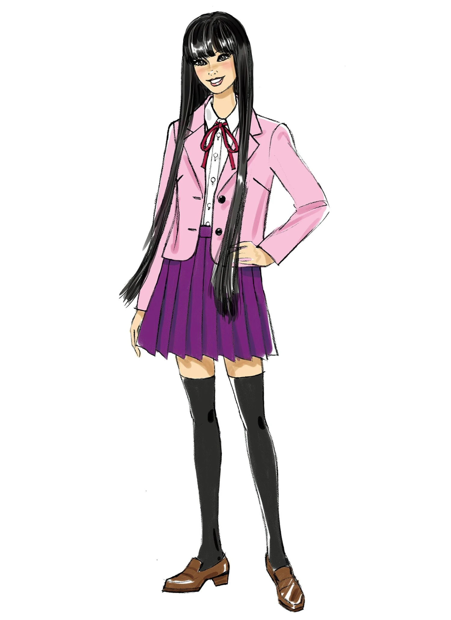 Semi-fitted, unlined jacket has collar and shoulder pads. B: pockets. Close-fitting, lined vest has tabs, shaped hemline, and back neck hook & loop closure. Purchased buckle and applique. Fitted top has mock front button band, and narrow hem. D: collar and tie. E: collar and collar band. Pleated skirt (cut on crosswise grain) has waistband and side zipper. Purchased bias tape to finish neckline D, and trim for D, optional F and G.