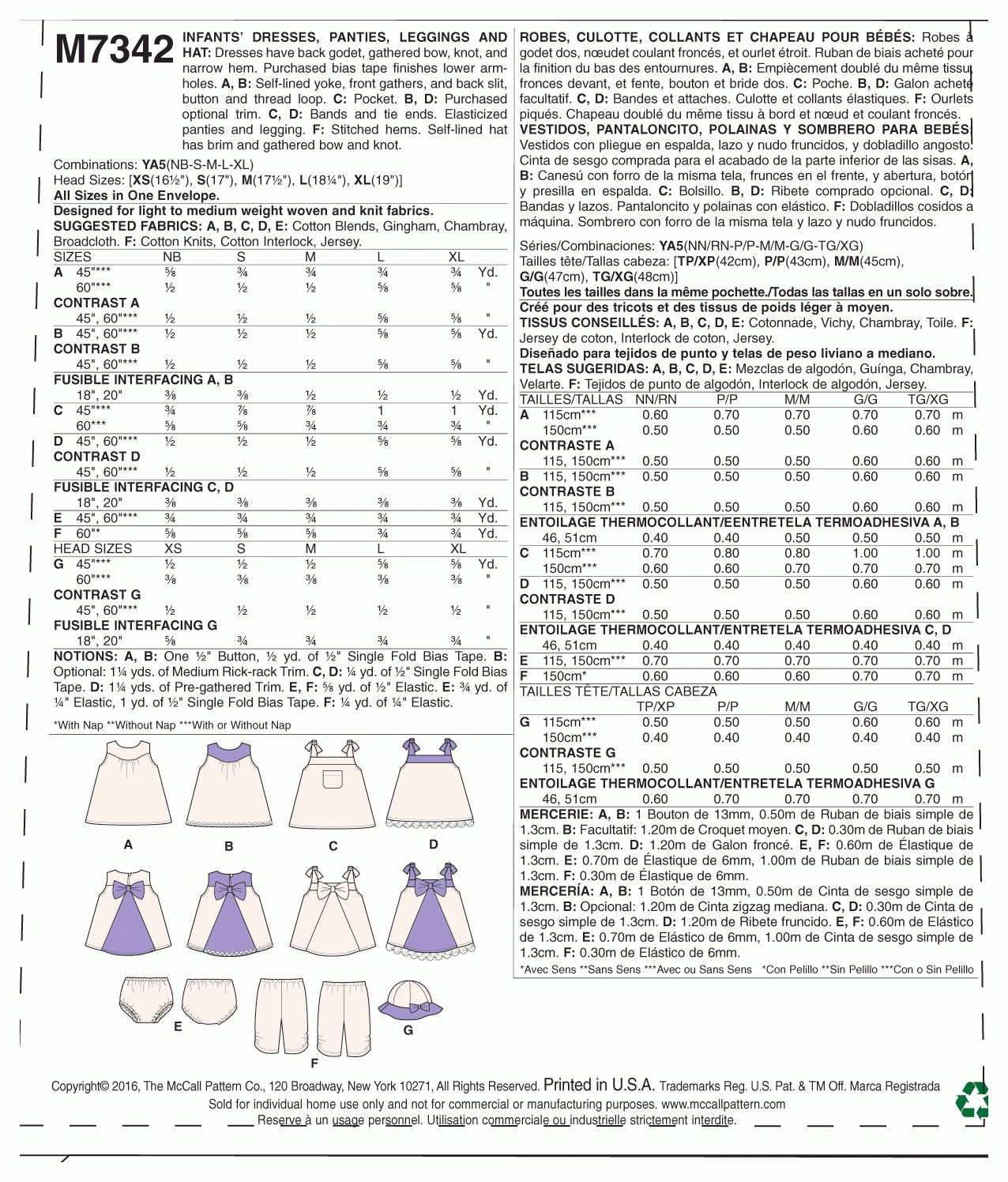 McCall’s Pattern M7342 Infants’ Dresses, Panties, Leggings And Bucket Hat