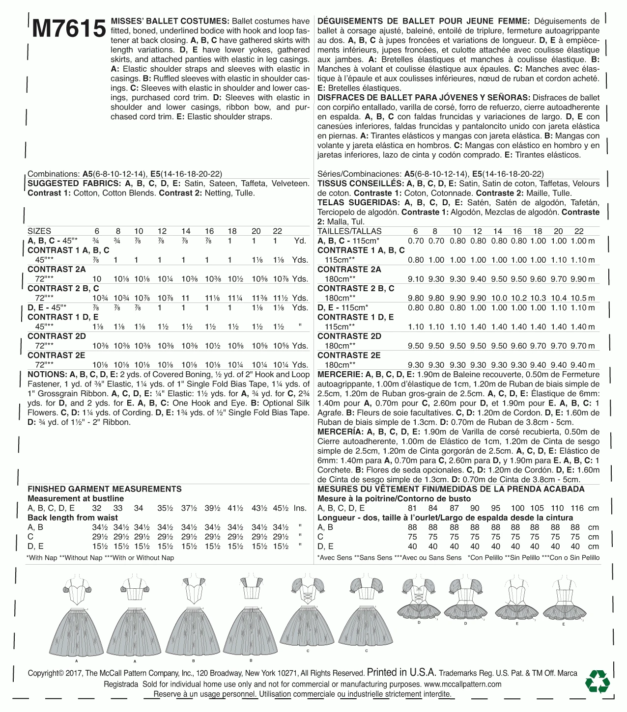 Be the first to review “McCall’s Pattern M7615 Misses’ Ballet Costumes With Fitted, Boned Bodice And Skirt And Sleeve Variations” Cancel reply