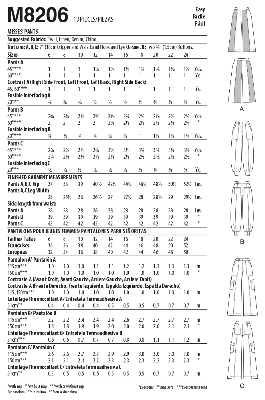 McCall’s Pattern M8206 Misses’ Pants