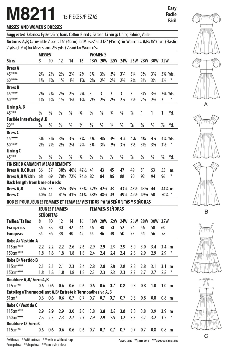 McCall’s Pattern M8211 Misses’ & Women’s Dresses