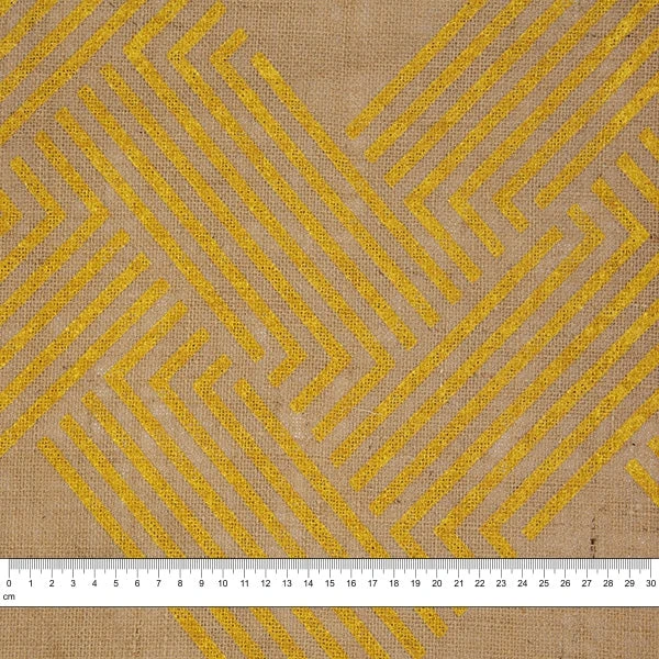 Supremely versatile. Hessian is a durable and woven fabric that is ideal for soft furnishings, textile décor and crafting projects. This Metallic Zigzag Print Hessian fabric is available with a width of 129.5cm, and to purchase by the metre. 100% Jute.