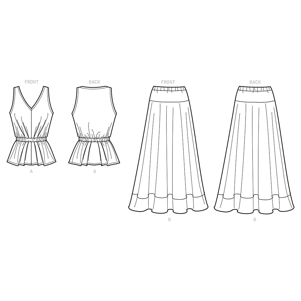 Newlook Pattern N6668 Misses’ Pull-Over V-Neck Sleeveless Top With Elastic Waist & Skirt
