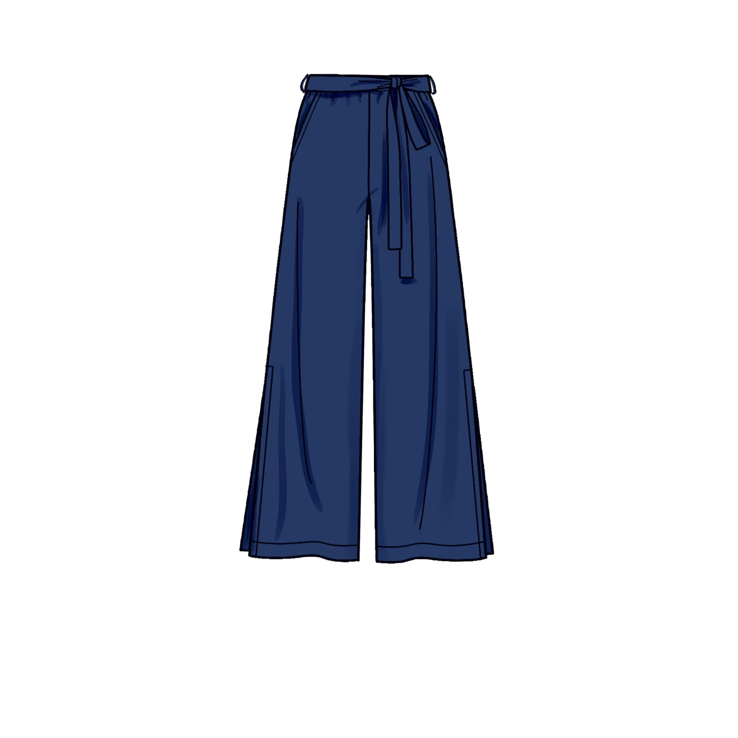 Misses’ pull-on straight or flared pants with slash pockets & tie belt.