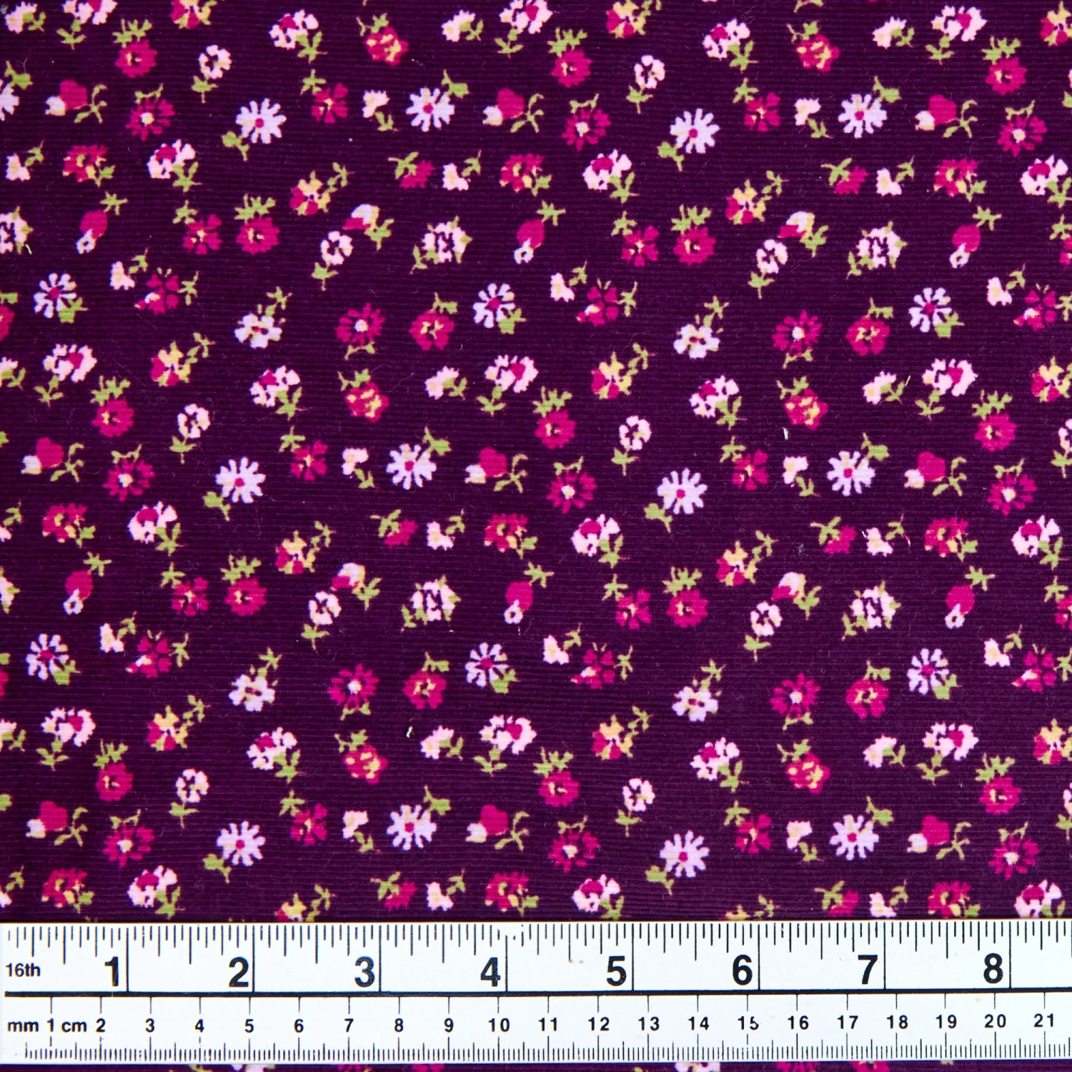 Printed Corduroy Fabric, Violet Floral- 114cm Width