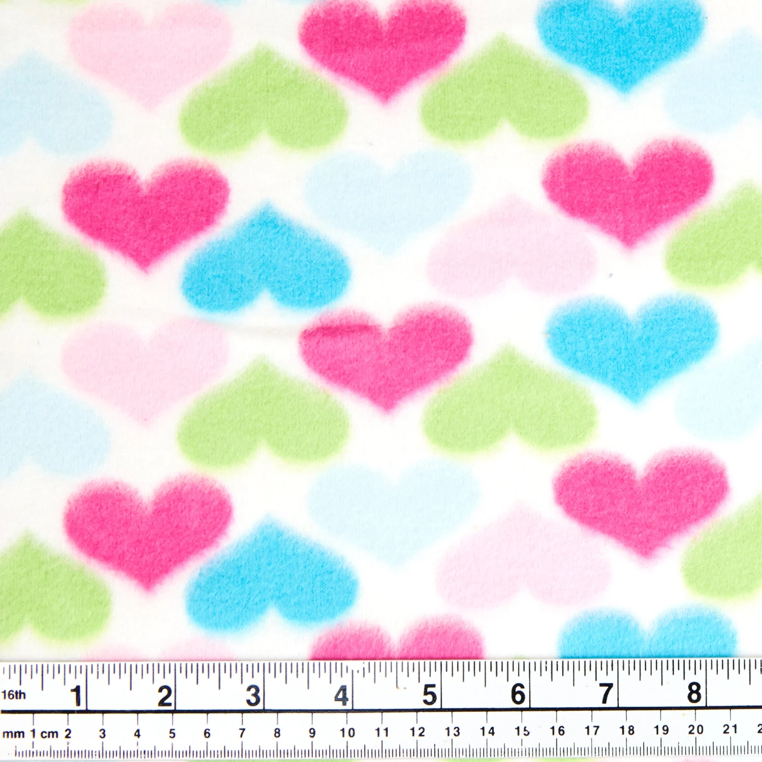 Printed Polar Fleece, Coloured Hearts- 140cm Width