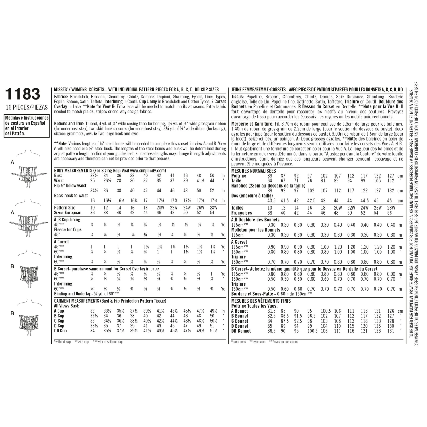 Simplicity Pattern 1183 Women’s And Plus Size Corsets