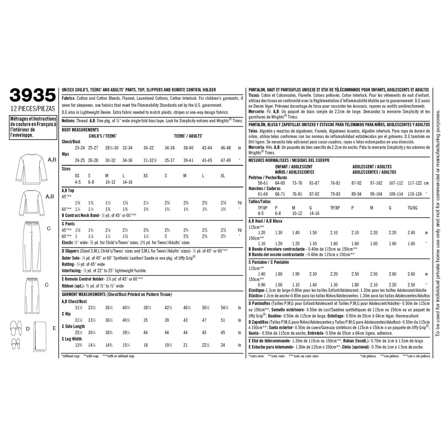 Simplicity Pattern 3935 Women’s/Men/Child Sleepwear
