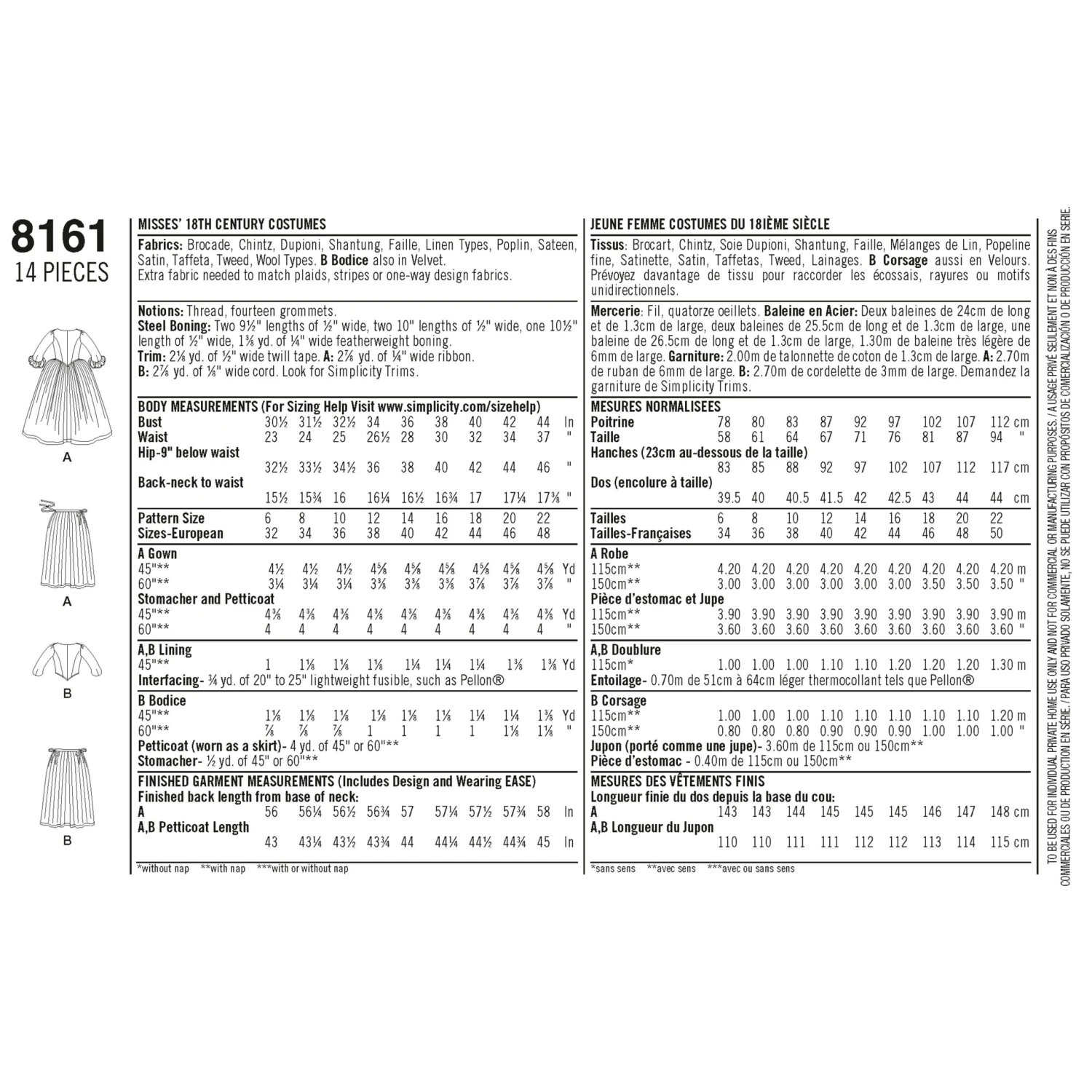 Simplicity Pattern 8161 Women’s 18th Century Costumes