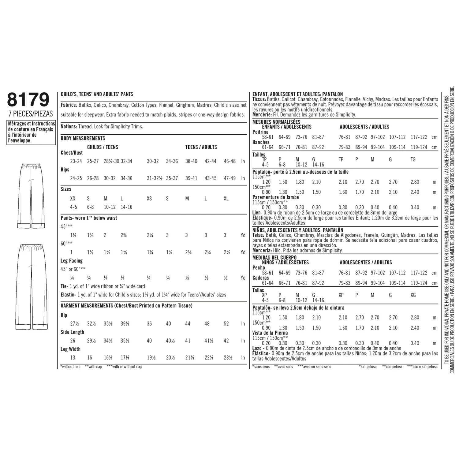 Simplicity Pattern 8179 Child, Teen And Adult Lounge Pant
