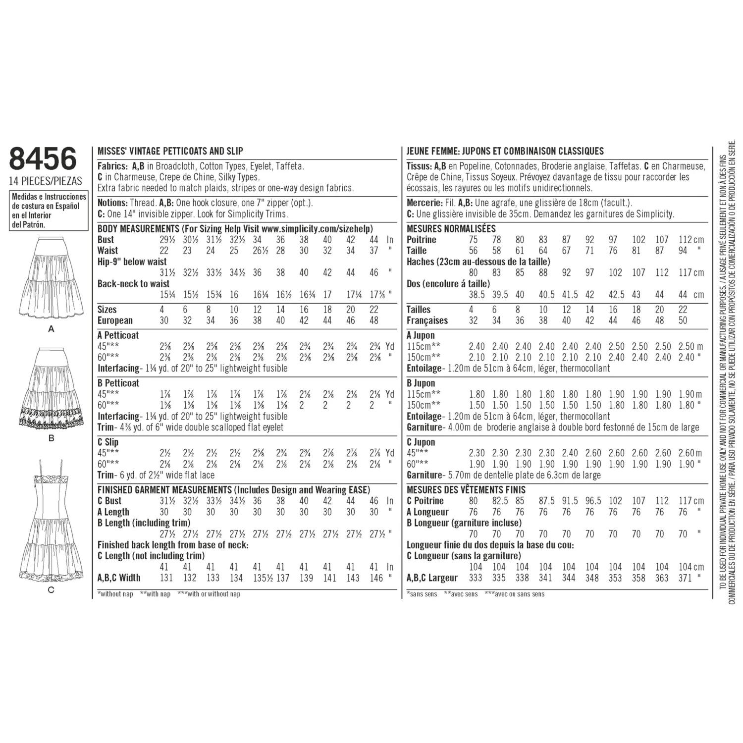 Simplicity Pattern 8456 Women’s Vintage Petticoat And Slip