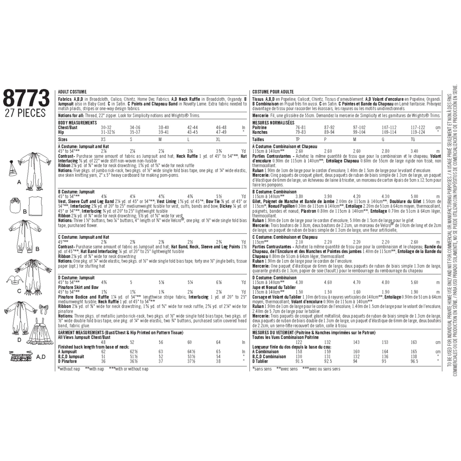 Simplicity Pattern 8773 Women’s, Men’s And Teens’ Costumes