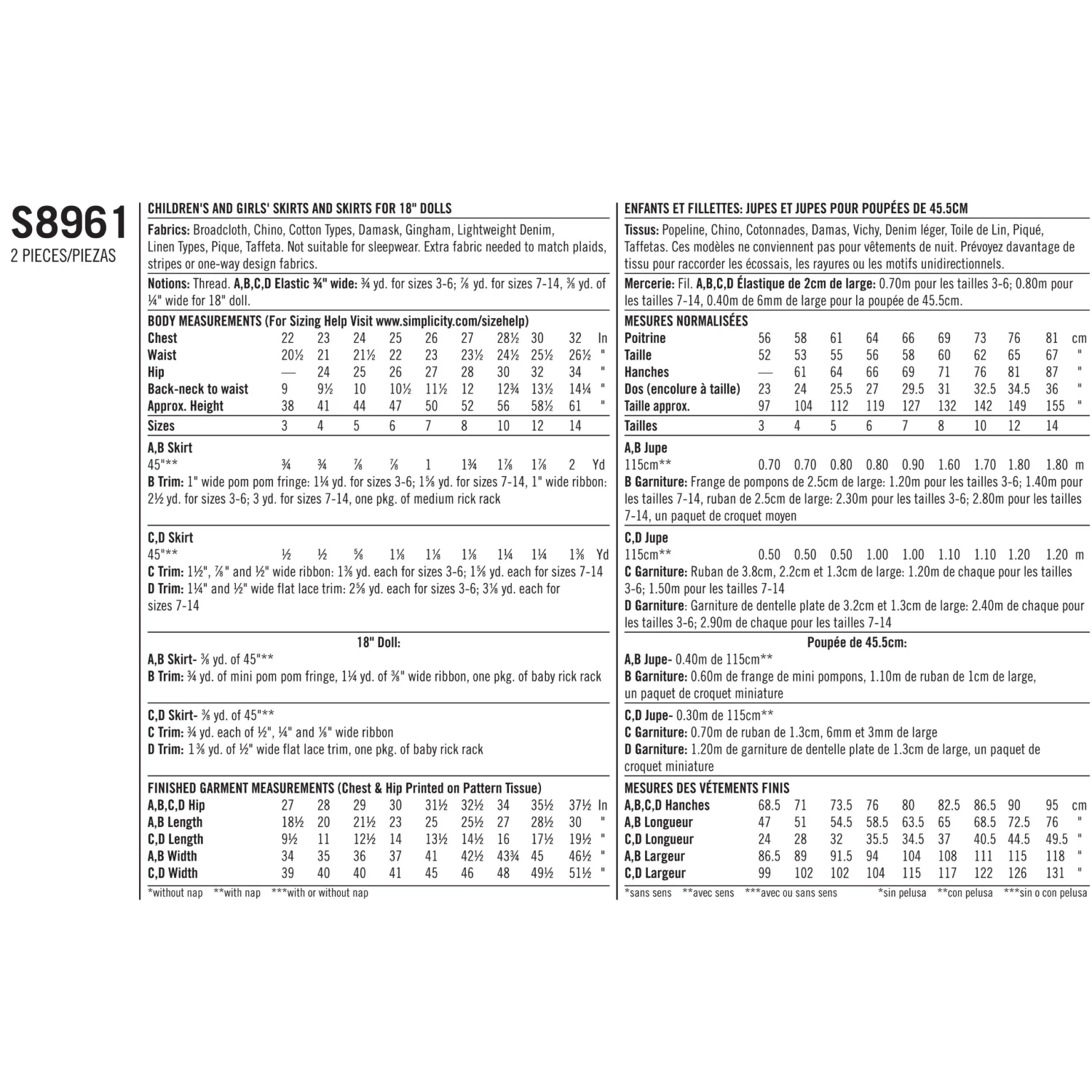 Simplicity Pattern 8961 Children’s, Girls’, And Dolls’ Skirts