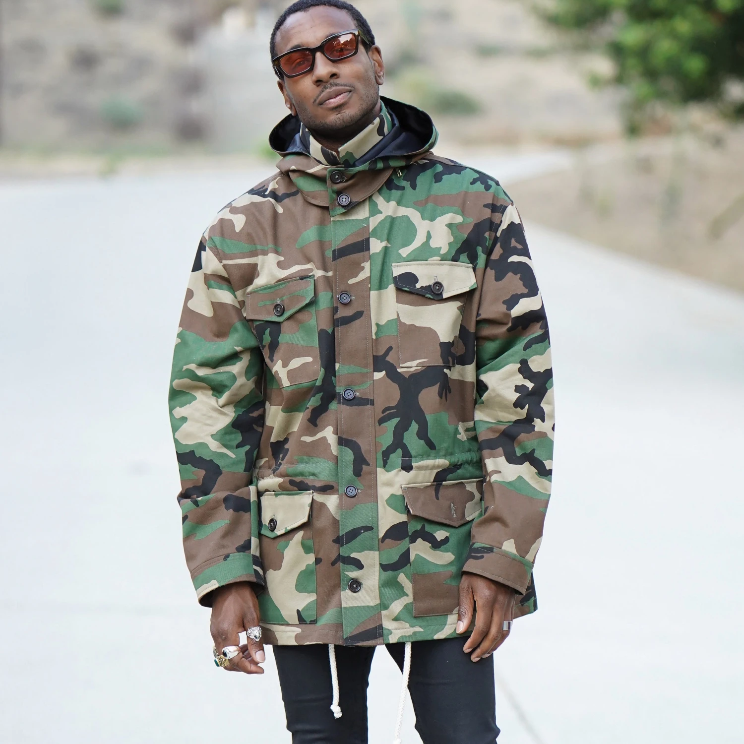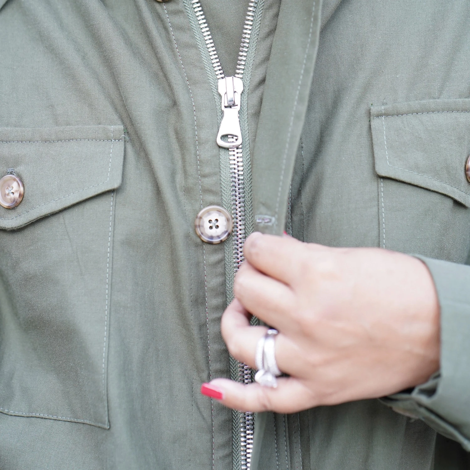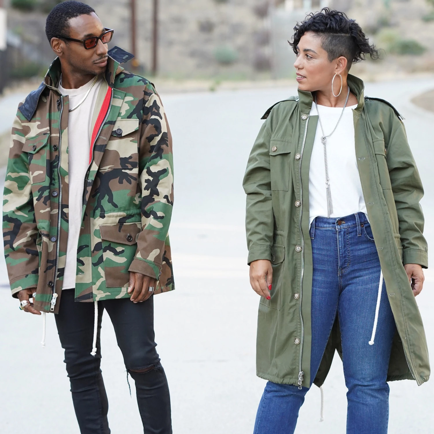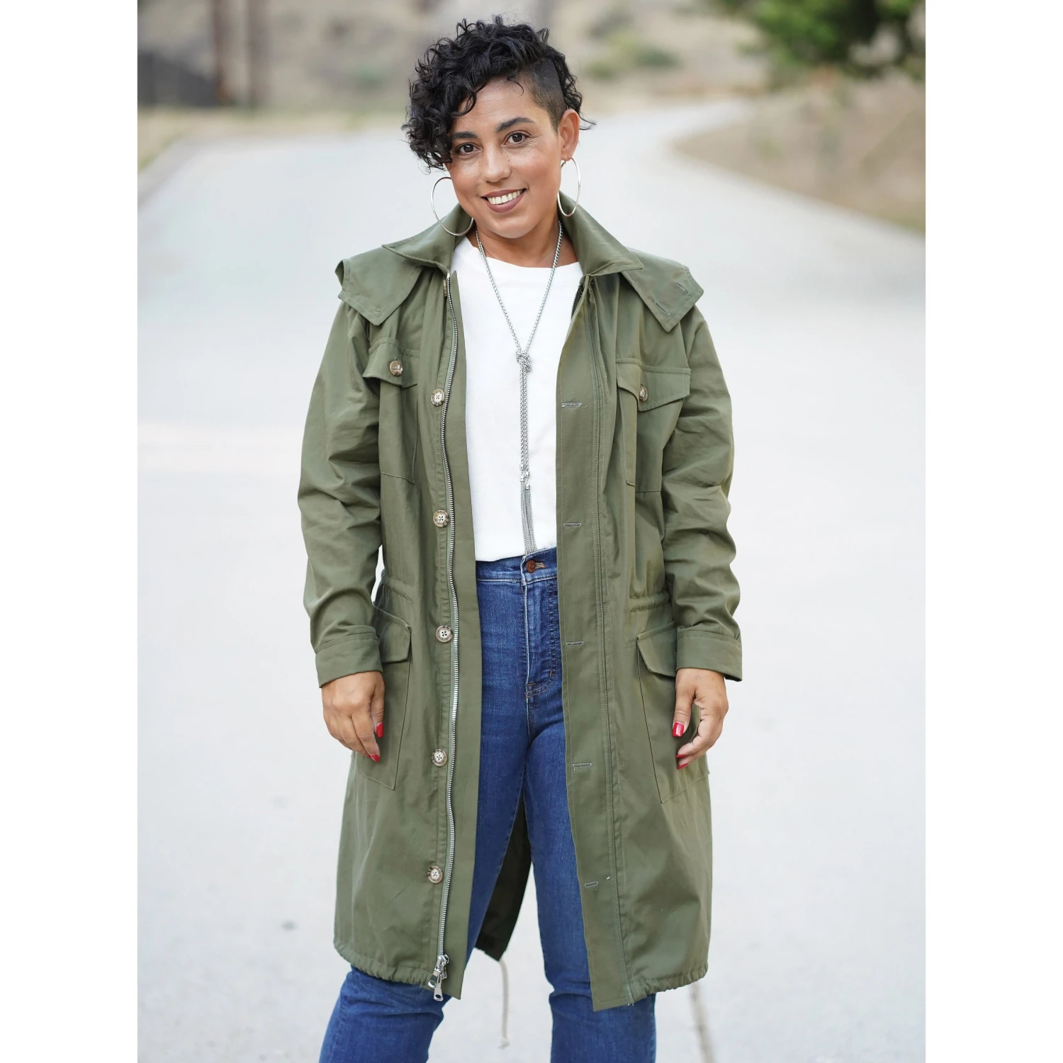 Simplicity Sewing Pattern S9052 -A (XS-S-M-L-XL)-Misses’ Men’s and Teen’s Jacket. Unlined combat or parka jacket has front separating zipper and button placket, Elasticated waist, four front pockets. Two length and hem-style options. Detachable hood.