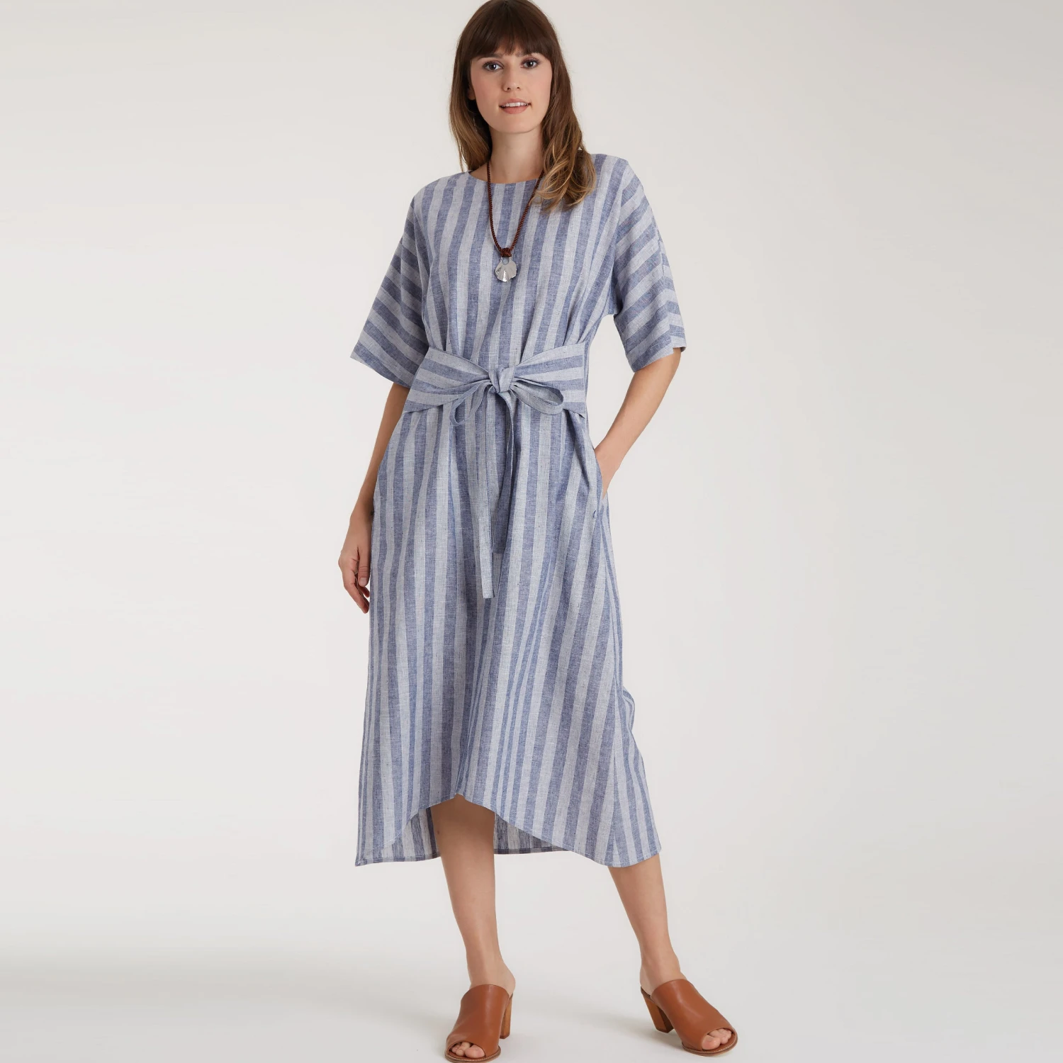 Simplicity Sewing Pattern SS9101- A (XXS-XS-S-M-L-XL-XXL) women,dresses, Misses’ pullover dresses in two lenghts. A: drawstring waist. B:,C: front wrap tie belt.