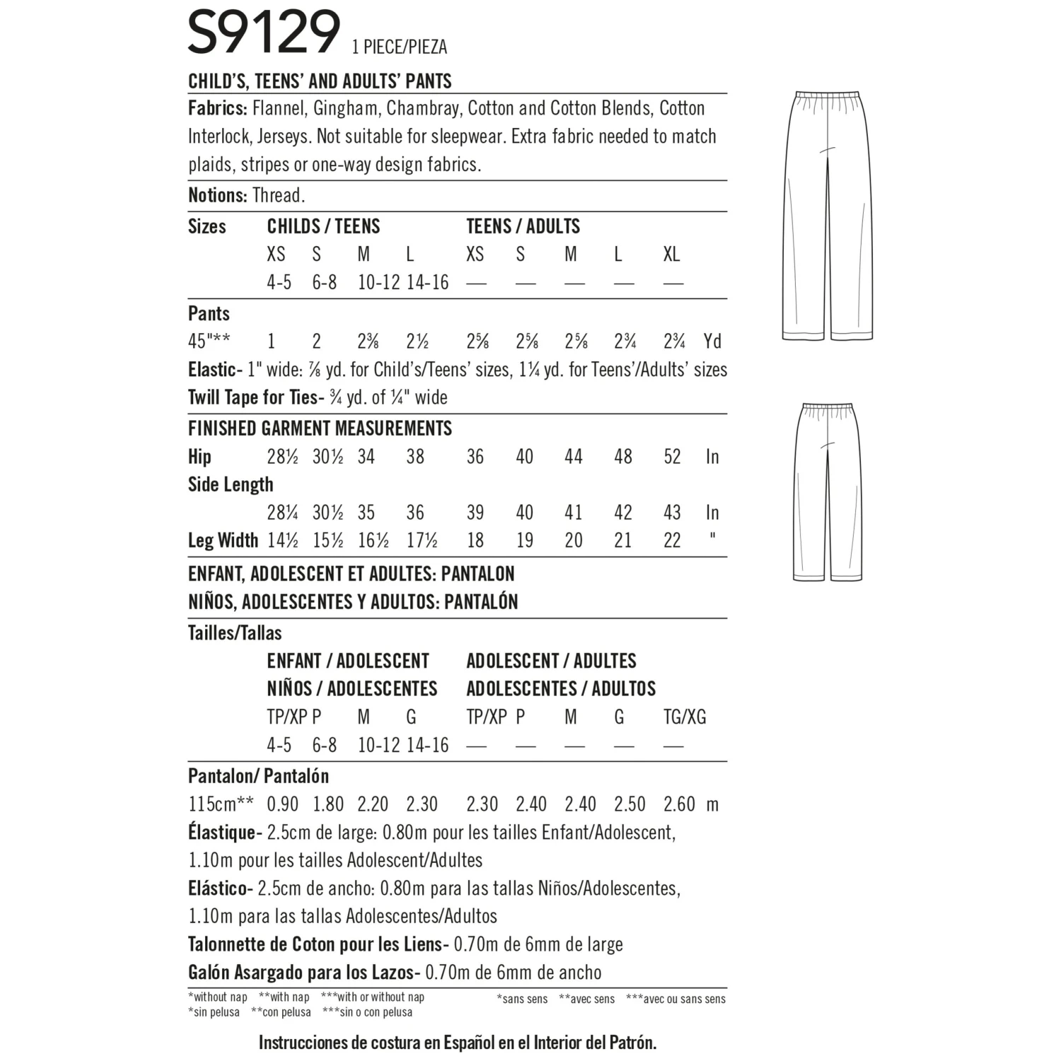 Simplicity Sewing Pattern SS9129- A (XS – L / XS – XL) women,men,cozywear,unisex-scrubs, From the Simplicity Learn-to-Sew pattern collection, make these child’s, teens’ and adults’ lounge pants. Note: if used as sleepwear, use fabrics and trims that meet the flammability standards set by the U.S. Government.