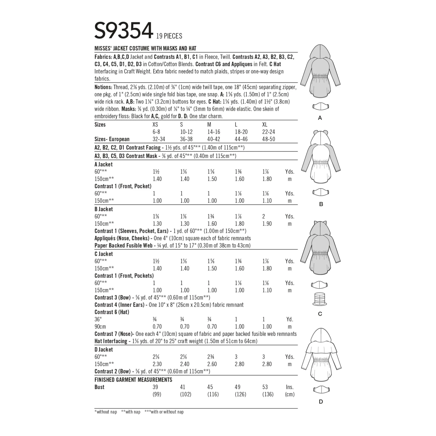 Simplicity Pattern 9354 Miss Jacket With Masks & Hat