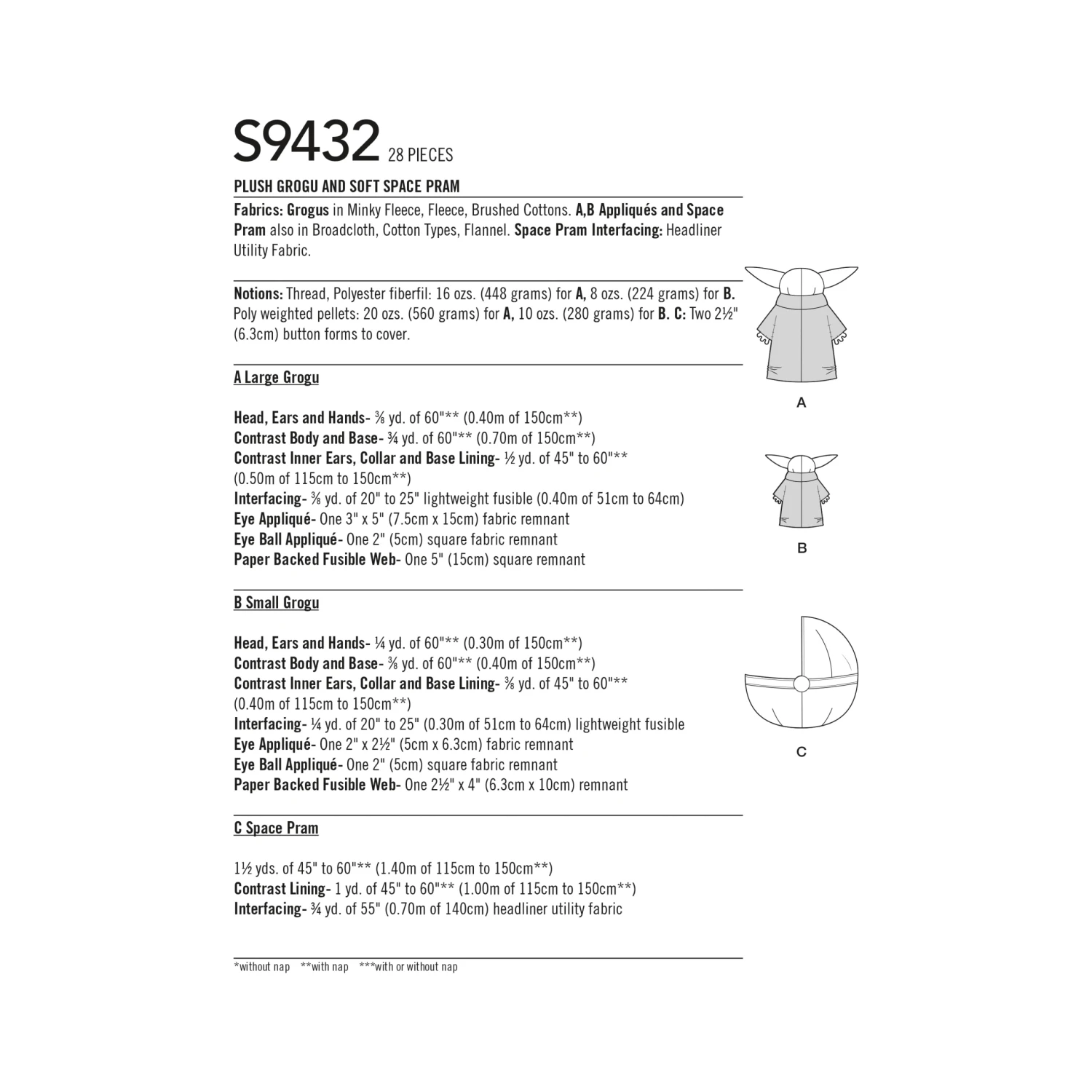 Simplicity Pattern S9432 Plush Grogu And Soft Space Pram