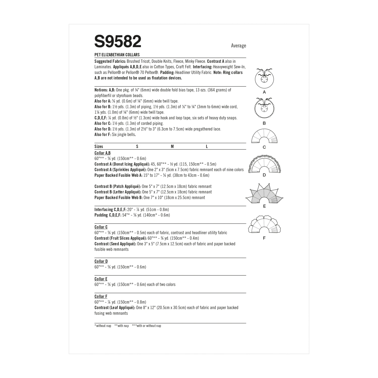 Simplicity Pattern SS9582 Pet Elizabethan Collars By Carla Reiss
