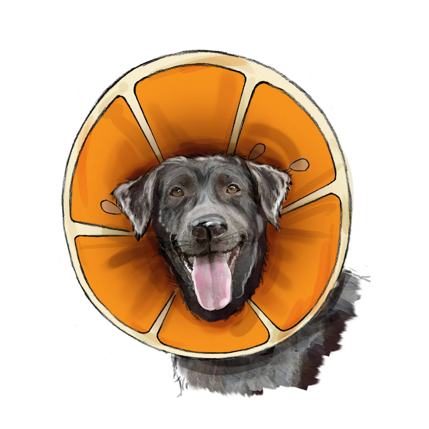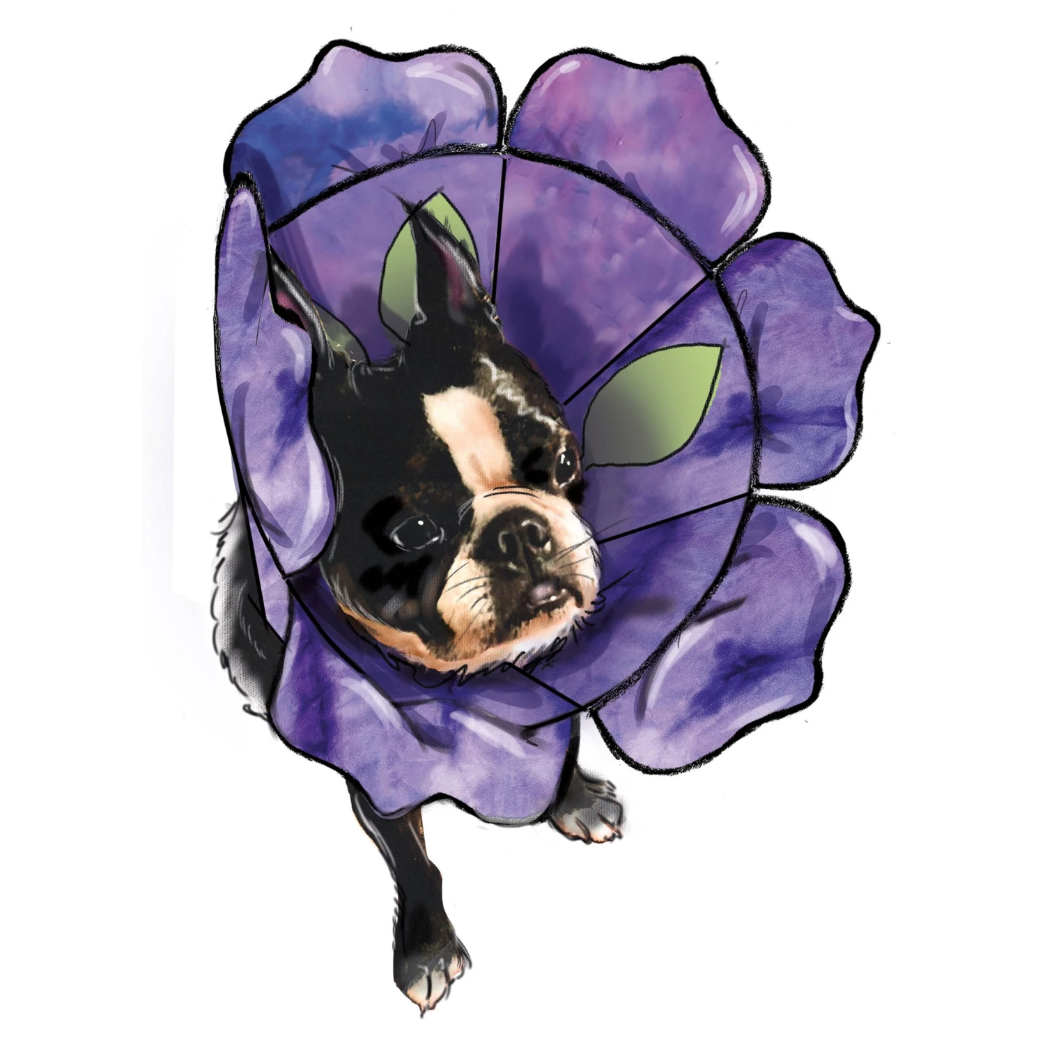 | Plush or cone shaped medical-use collars for pets in three sizes are soft and playful while offering protection. Plush ring shaped collars in donut and life ring themes have loops to attach to pet collar and adjustable ties. Soft cones with light padding have adjustable hook and loop and snap closures and fruit slice, lace ruff, petunia and jester themes. |