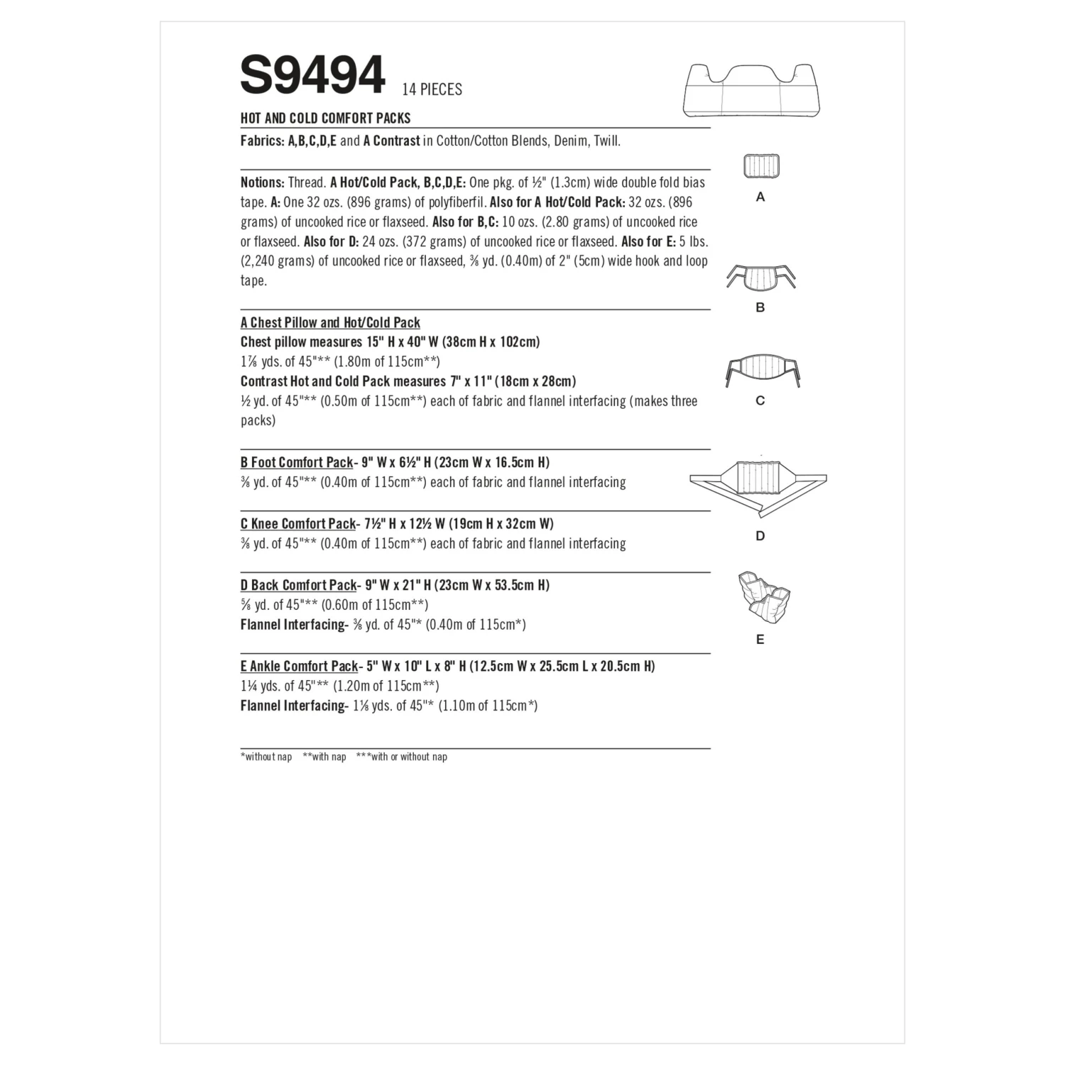Simplicity Sewing Pattern S9494 Hot And Cold Comfort Packs