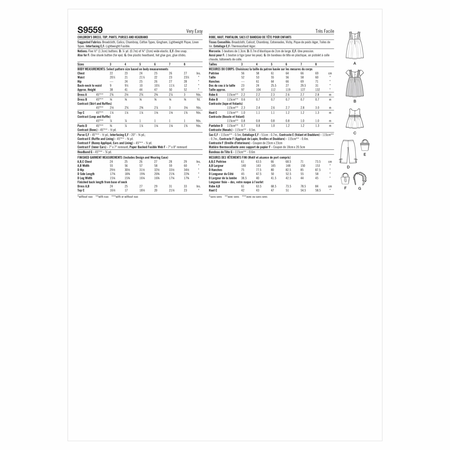 Simplicity SS9559 Child Dress, Top/Pant, Accessories