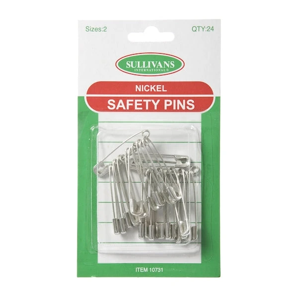 Sullivans Nickel Safety Pins, Size 2- 24pk