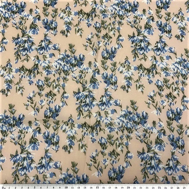 Twill Chiffon Fabric, Beige Floral- 140cm