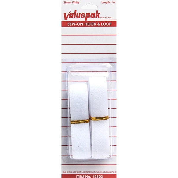 Valuepak 20mm Sew-On Hook & Loop, White- 1m
