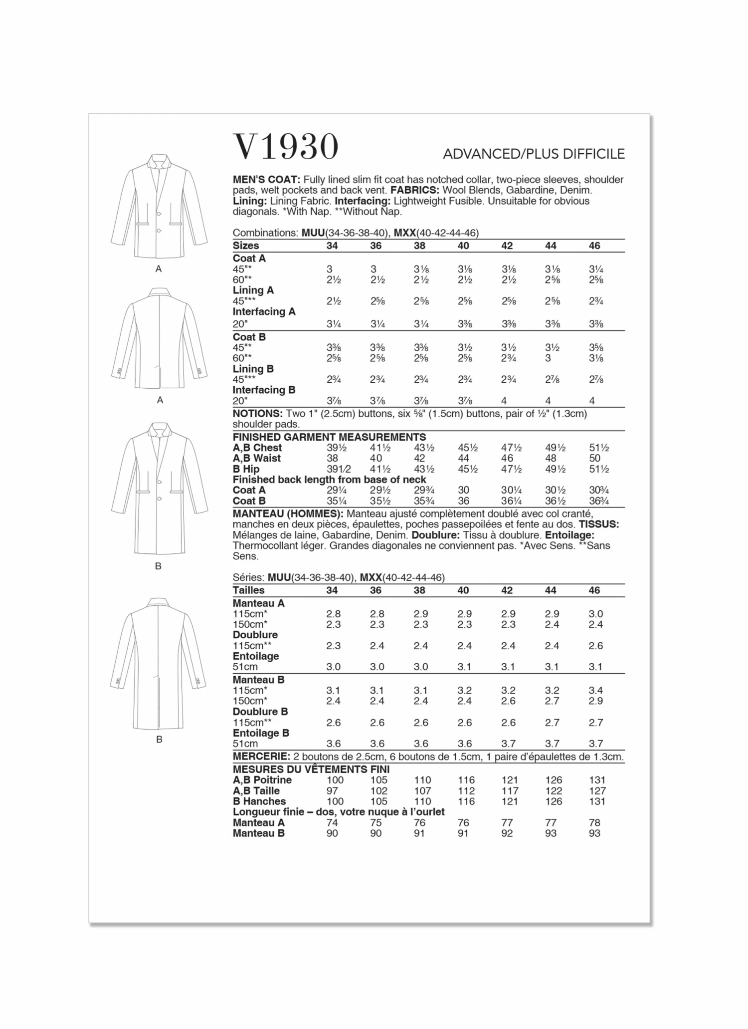 Vogue V1930 Men’s Coat